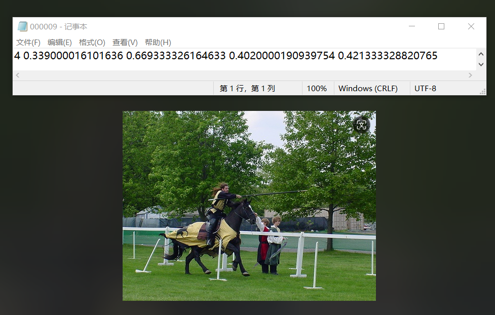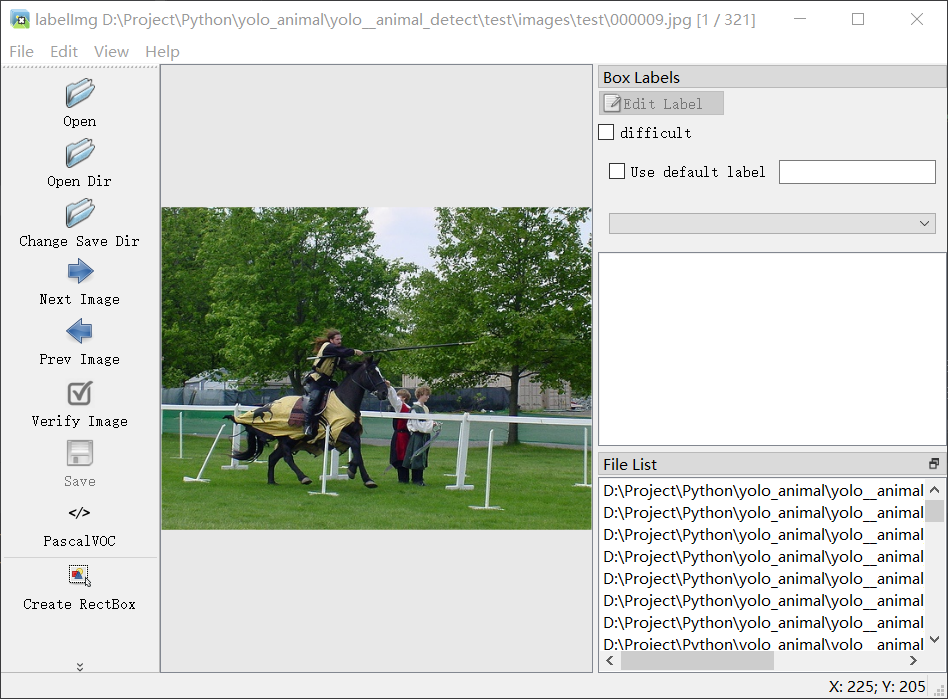 这个标签文件一共是由五个部分组成,因为图中只有一个动物,所以标签内只有一行,标签每一行第一个数字代表是类别,在这个示例中,动物是马所以是4,第二个和第三个数字代表是标记框的中心点的x,y的坐标,而后面两个数字代表的是标记框的长,宽,这些数字做过归一化的处理,所以是0~1之间的数字。按照这个标准来放置数据,可以为后续训练提供方便。如果你需要使用自己的数据集,那么就需要对图片进行标注。